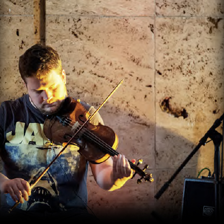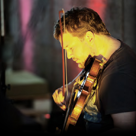 Ein kleiner Android erwacht in einem Wald und lernt, sich als Entdecker und die Natur, die ihn umgibt als seinen Lehrmeister kennen. Die Fragen nach der Sinnhaftigkeit und den Möglichkeiten künstlicher Intelligenz werden spielerisch und nicht ohne kindlichen Frohsinn gestellt. Die Spiegelung der Menschenwelt im “Bewusstsein” des Bots kann nicht anders als ernüchternd sein. Dennoch gelingt es ihm die Menschen positiv zu inspirieren und für Hoffnung in einer technischen und unnatürlichen Welt zu sorgen. Wie beim letzten Projekt von Knaxvortex ist das Trio schemenhaft hinter einer halbdurchsichtigen Leinwand zu sehen, auf die Andreas Kustreba live die Bilder projiziert und ihnen mit seinen Bearbeitungen und Effekten Lebendigkeit verleiht. Die filigrane Graphic Novel von Tobias wird somit zweifach zum Leben erweckt: musikalisch, durch teils improvisierte und teils komponierte Musik und visuell durch Andreas Kustrebas interaktive Livevisuals. Florian Vogel – Violine, Elektronik Oliver Biella – E-Bass und Pedal Steel, Tobias Frey – Bariton E-Gitarre, Didgeridoo Andreas Kustreba – Projektion, Bildbearbeitung und Effekte |